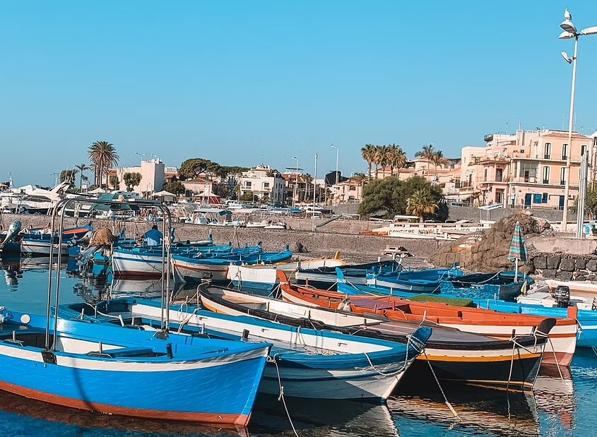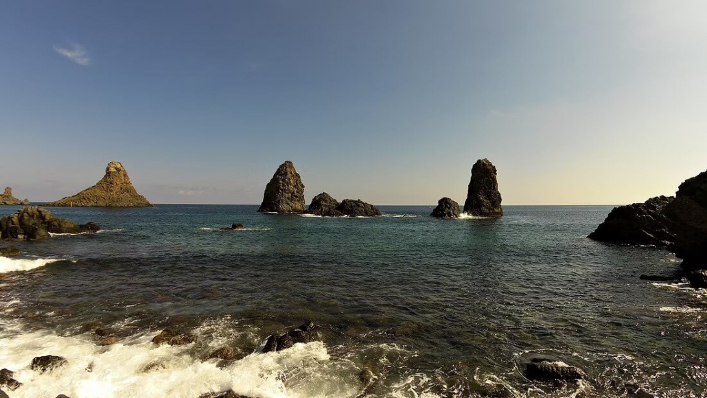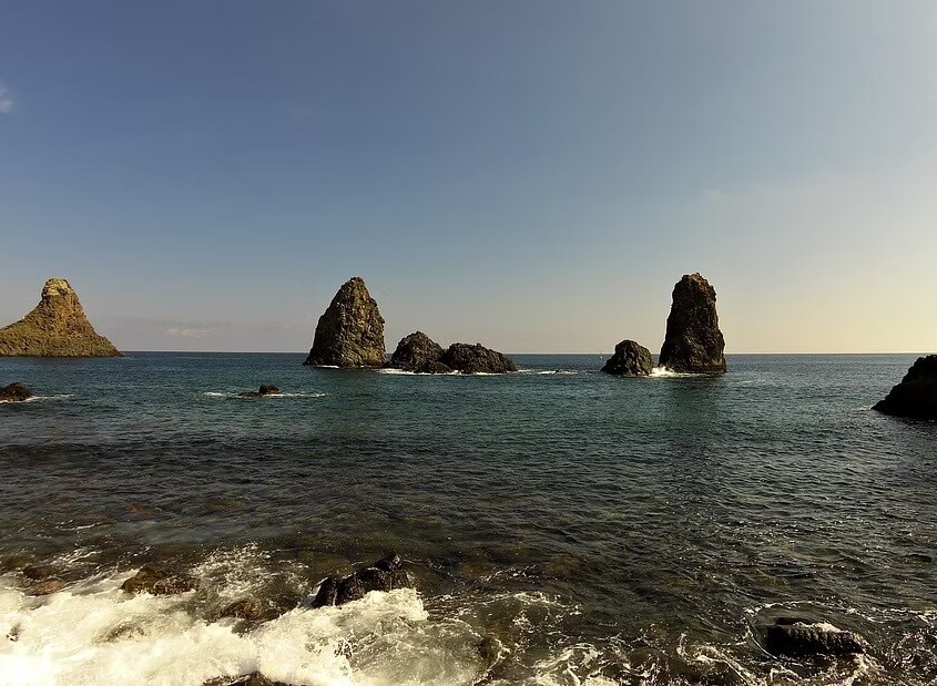 Polyphemus threw huge rocks at Odysseus who managed to escape into the sea without being struck. These Cyclopes rocks, the Isole dei Cyclopi, still rise in the sea in front of Acitrezza and gave the entire coastal region its current name. It is possible to rent a little boat and make a short tour around.