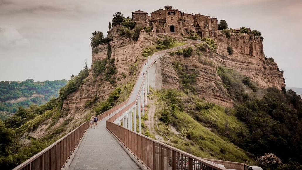 Civita, a town better known as Civita di Bagnoregio, is located in the valley of gullies, between Lake Bolsena and the Tiber valley , in the town of Bagnoregio . Alone and at the same time fair, Civita is called ” the dying city ” because of the continued erosion of the hill on which it stands and in part to the relentless depopulation: currently it is estimated that the village is inhabited by eight people . To reach Civita there is only one way: the village is connected to Bagnoregio and the world by a narrow footbridge concrete of about 300 meters . It can be traveled only on foot To enter the village, you cross the Porta Santa Maria , opened by an arc of granite, topped by a loggia. Among the typical houses in tuff of the village, one remains only the facade and the glance is quite sensational. Immediately after you find Piazza San Donato , almost devoid of flooring: here twice, the first Sunday of June and 2 September, takes place Tonna . The Tonna is a good time to treat yourself to a visit to this unique town in the world . It is a very old race in the square reminiscent of the Palio di Siena , but you run a donkey. The donkeys , stars of the past life of Civita di Bagnoregio , as the only means of transport to reach the village between the steep paths that wound up to the top of the cliff, are the protagonists of this race that has ancient origins.